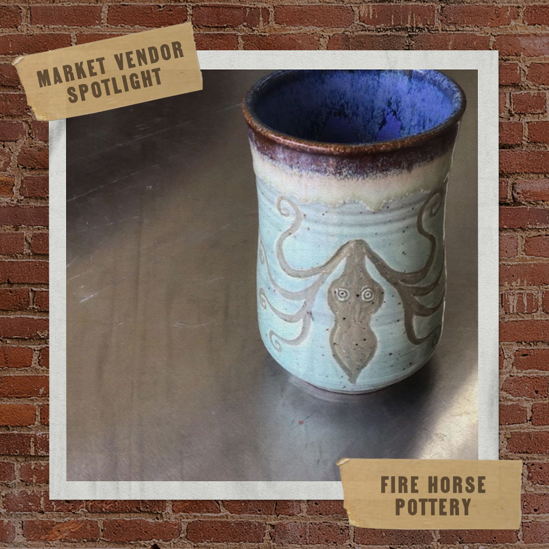 Kerry Kennedy is the co-owner and potter at Fire Horse Pottery with creative designs contributed by her entire family. Kerry has been a studio artist at Kentuck for over 16 years and has been a potter for 27 years. The work produced by Fire Horse has evolved into colorful, functional art with a side of illustration and punk aesthetic thrown in.