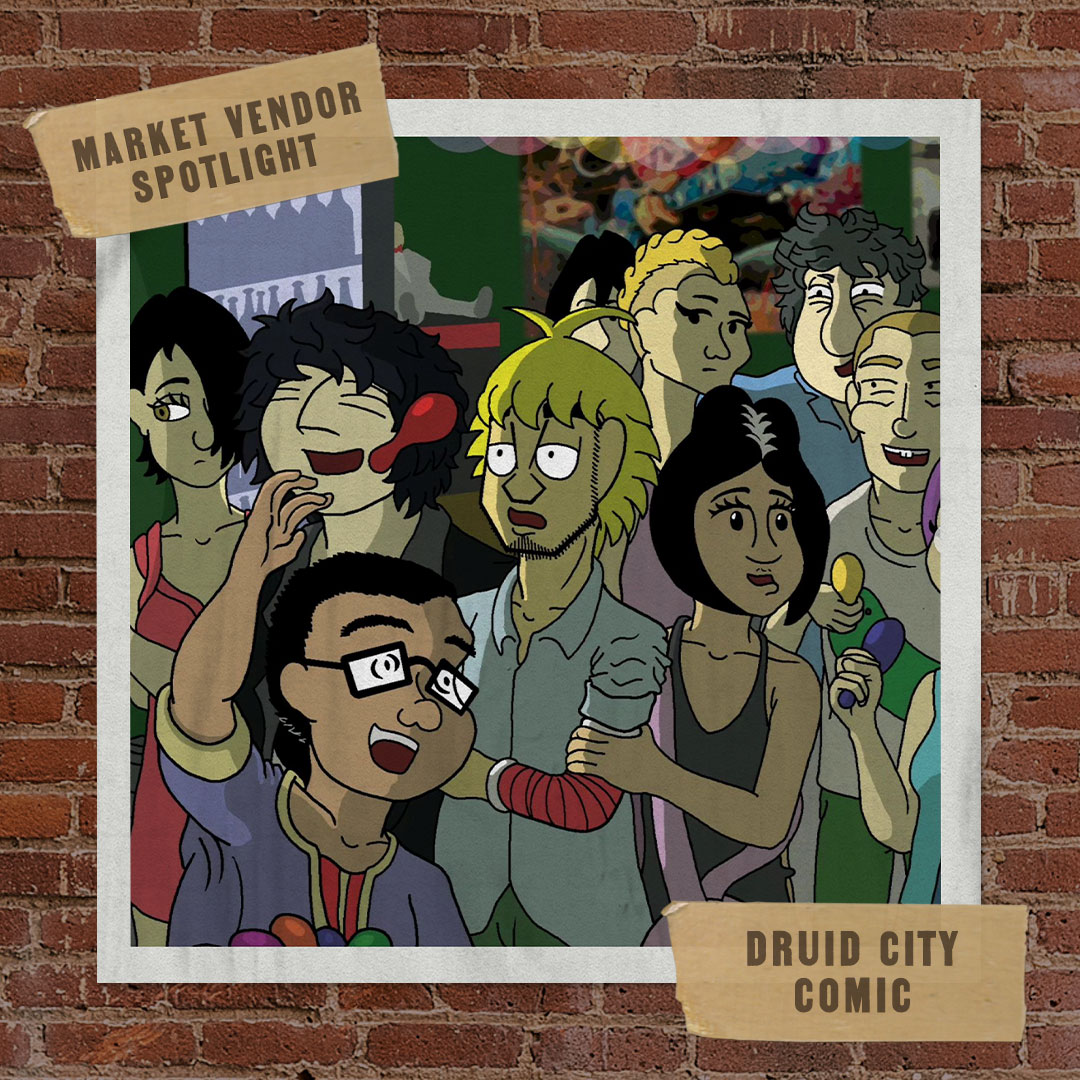 Jeremy Satcher is the author of Druid City, a graphic novel series set in a fictionalized Tuscaloosa. The series follows a driven but unscrupulous investigative journalist, Hunter Hastings, as he uncovers scandalous news stories to overcome his bad reputation. The series prominently features Tuscaloosa locations as settings and aims to depict a little piece of what living in Tuscaloosa was like from 2008 to 2014.